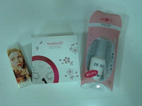 多虧朋友北上參加2009台北國際美容展,聽說好康活動不少,每年都有便宜可以撿!去年買到多款假睫毛一盒只要$130俗啦~現在只要一通電話外務就送來,其實很方便.就當作去認識一下廠商.所以今年我人沒去現場也能搶搭順風車,我對彩粧品需求不大,但買了總能派上用場的啦~